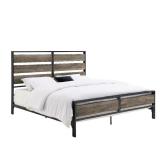 King Size Industrial Slat Bed in Grey Wash - Walker Edison BKSLGW Decorative nail heads Box spring support feet Plank style head and footboard Mixed material king-size bedframe Durable metal and wood construction Color: Gray Wash NEW! MSRP: $470 No refunds after the item has left the building. |