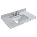 WOODBRIDGE 37" x22 Vanity Top with Under Mount Rectangle Bowl, Carra White, Natrual Marble Stone, 8" Faucet Holes. CAVT3722-8, 37"x22" MARBEL
