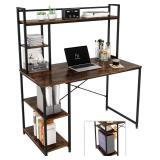 Nost & Host Computer Desk with Hutch & Bookshelf, Home Office Working Table with Hutch & 2 Tier Adjustable Shelves, Sturdy Wooden Desk for Vanity Study Gaming, Easy Assemble, 47.2 inches, Rustic Brown
