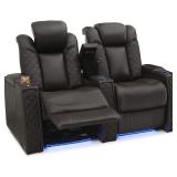 Seatcraft Enigma Home Theater Seating - Top Grain Leather - Power Recline - Power Headrest - Power Lumbar - SoundShaker - USB Charging - Lighted Base and Cupholders (Row of 2, Brown)