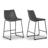(Set of 2) Coleman Counter Stool. Color-Slate Grey. Founded atop an iron sled-style base finished in black, this piece’s bucket seat is covered with faux leather upholstery in a neutral tone, so it’s as easy to match as it is to clean 34" x 19"