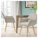 (Set of 2) Callison Upholstered Arm Chair. Color-Beige. Upholstered in sumptuous fabric with a stunning hollow-carved design, the chair comes anchored with long, tapered metal legs in a gorgeous beech wood finish. Overall 30.1'' H x 22.05'' W x 22.05'' D