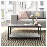 Faux Slate Concrete Coffee Table. Color-Gray/Black. For everyday storage solutions, a lower shelf accommodates boxes, shoes, linens, or anything else you call for. Measuring 15.75'' H x 39.4'' W x 19.7'' D, this item fits well at the foot of a bed.