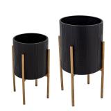 Sansome 2 - Piece Iron Pot Planter Set. Color-Black. Made with metal and given exceptional elegance with a matte finish and with a geometric textured surface. Overall - Large planter 23'' H x 14'' W x 14'' D