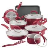 Rachael Ray Create Delicious Nonstick Aluminum 13-Piece Cookware Set. Aluminum cooking vessels deliver quick, even heat distribution while durable nonstick cooking surfaces allow easy food release for quick cleanup.