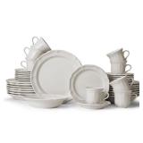 French Countryside 40 Piece Dinnerware set. Color-Ivory. This 40 piece dinnerware set, service for eight, includes (8) of each: 10-3/4 inch dinner plate, 8-1/4 inch salad plate, 8-1/4 inch (15 ounce) rim soup bowl, 8-1/2 ounce tea cup and 6-1/4 inch saucer.