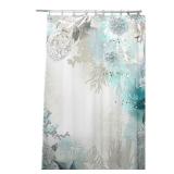 Seafoam Single Shower Curtain. Color-White/Blue. A printed motif of botanical and floral details gives this piece a pop of pattern, while white, blue, and gray hues offer a burst of color. Overall 72'' H x 69'' W