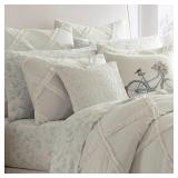 Laura Ashley Adelina White Cotton 3 Piece Duvet Cover Set. KING. Crisp cotton offers comfort and the appliqued ruffle pattern creates a subtle dimensional effect with heirloom overtones. Duvet Cover/Comforter 92'' W x 106'' L