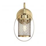 Transitional 1 Light Wall Sconce in Natural Brass. This 1-light sconce frames a textured cylindrical mesh shade with an eye-catching hoop for an intriguing lighting look. 6 x 11 x 7"