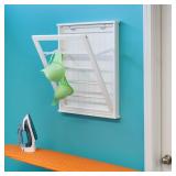 Petrone Single Folding Drying Rack. Color-White. The product extends 14 inches out from the wall when at a 45-degree angle. Overall 27'' H x 23'' W x 2.25'' D