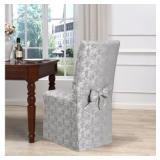 (Set of 4) Kathy Ireland Desert Skies Slipcover Dining Room Chair Cover. Color-Gray. Whether protecting your new furniture or rejuvenating your old tired furniture, the woven jacquard scroll pattern will add sophistication to your decor. 41.5" Tall, Chair width 20", Chair Depth 16", Seat to Floor Height 15.5"