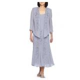 Lace Shift and Sheer Chiffon Open Jacket Set with Pearl Embellishments. A flattering sleeveless shift, with a relaxed fit and round neckline, all in silver-shot lace. The neck is embellished with pearls and beads, adding classic, glimmering glamour. The jacket is made of sheer, soft chiffon with lace cuffs and a draped, open front. The perfect set for formal events in Spring and Summer. Size 10. New with Tags. $120.00. (11) |