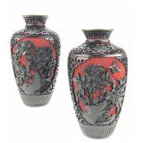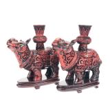 - 2000 CA 1850 PAIR OF CHINESE HAND CINNABAR LACQUER SUNDA RHINOCEROS WITH KU VASES