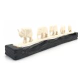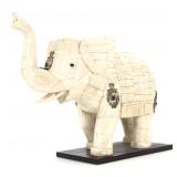 - 2008 LARGE VINTAGE CHINESE HAND CARVED BONE INLAY ELEPHANT