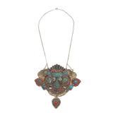 - 2007 VINTAGE TIBETAN SILVER TURQUOISE CORAL DRAGON NECKLACE