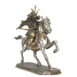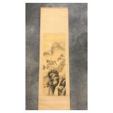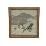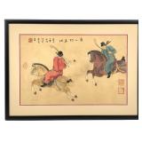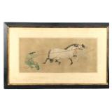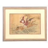 - 2009 ANTIQUE SIGNED JAPANESE MAN RIDING HORSE INK ON FABRIC