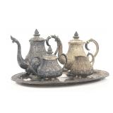 - 2010 ANTIQUE SIAM THAI STERLING SILVER REPOUSSE TEA SET