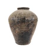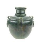 - 2012 ANTIQUE MARTAVAN STYLE GREEN GLAZE STORAGE JAR