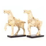 - 2016 PAIR CHINESE CARVED BONE INLAY TANG HORSE SCULPTURES