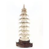 - 2018 VINTAGE CHINESE BONE & IVORY CARVED VENEER PAGODA TEMPLE