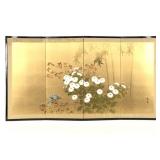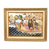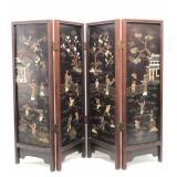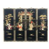 - 2661 VINTAGE ASIAN LACQUER CARVED STONE GEISHA SHOJI SCREEN