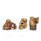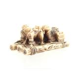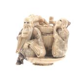 - 2022 JAPANESE IVORY CARVED THREE MEN DRINKING OKIMONO