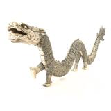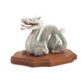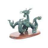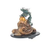 - 2664 VINTAGE BRONZE CHINESE LUCKY DRAGON ON WAVE SCULPTURE