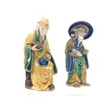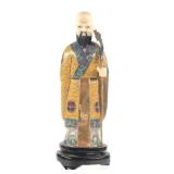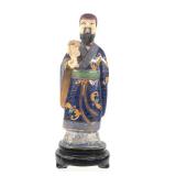 - 2037 CHINESE PORCELAIN & CLOISONNE MAN W/STAFF FIGURINE