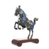 - 2038 CHINESE STERLING SILVER & CLOISONNE HORSE FIGURINE