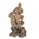 - 2654 VINTAGE CHINESE HAND CARVED WOOD IMMORTAL FIGURINE
