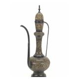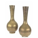 - 2042 PAIR VINTAGE INDIA ETCHED FLORAL SOLID BRASS VASES