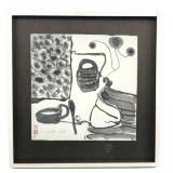 - 2047 RARE HEINRICH "HENRI" JOHANN RADELOFF "STILLEBEN" JAPANESE SUMI INK WATERCOLOR ON PAPER