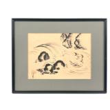 - 2046 RARE HEINRICH "HENRI" JOHANN RADELOFF JAPANESE SUMI INK WATERCOLOR ON PAPER