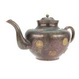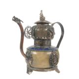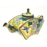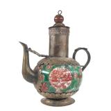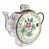 - 2570 VINTAGE BRASS ENAMELED MINIATURE FLORAL TEAPOT