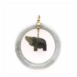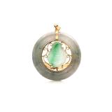 - 2559 CHINESE JADE & AGATE CARVED BALL PENDANT