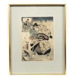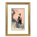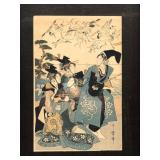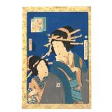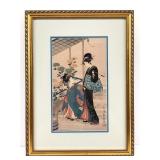 - 2638 ANTIQUE TOYOKUNI TWO GEISHA'S WOODBLOCK PRINT