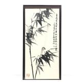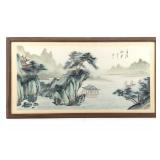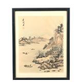 - 2567 SIGNED CHINESE VILLAGE LANDSCAPE INK ON FABRIC