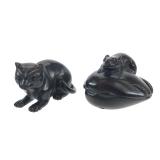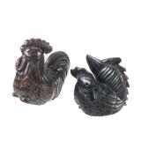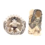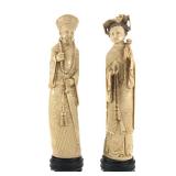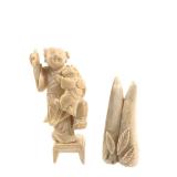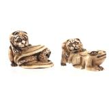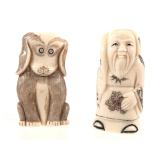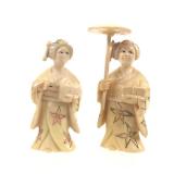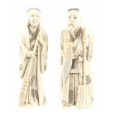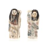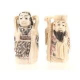 - 2555 2PC JAPANESE IVORY RESIN CARVED NETSUKE FIGURINES