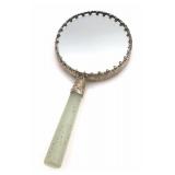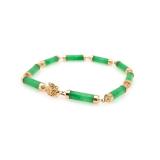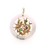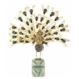- 2590 CLOISONNÉ GOLD PLATED FILIGREE PEACOCK ON JADE