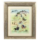 - 2565 SIGNED CHINESE HORSEMEN PLAYING POLO WATERCOLOR ON PAPER