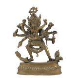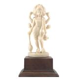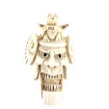 - 2627 ANTIQUE HAND CARVED IVORY THREE HEADED DEITY FIGURINE
