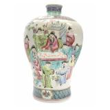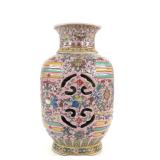 - 2578 VINTAGE CHINESE HAND PAINTED MILK GLASS VASE