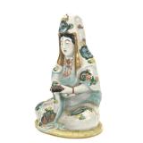 - 2648 VINTAGE CARVED WOOD SEATED GUAN YIN BODHISATTVA STATUE