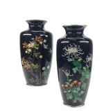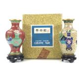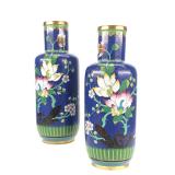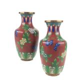 - 2605 2PC VINTAGE CHINESE CLOISONNE WARE ENAMEL VASES