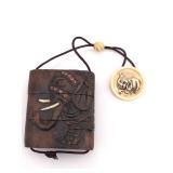 - 2557 JAPANESE IVORY CARVED RELIEF BEARDED MAN PENDANT