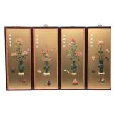 - 2020 VINTAGE CHINESE CARVED STONE 4 PANEL SCREEN
