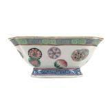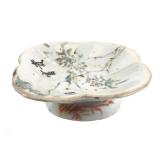 - 2569 ANTIQUE CHINESE HAND PAINTED PORCELAIN PEDESTAL DISH
