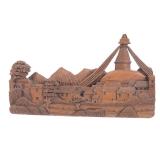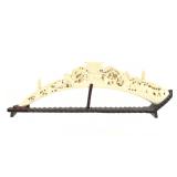 - 2589 VINTAGE CHINESE TUSK SHAPE RESIN CARED TEMPLE BRIDGE