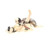 - 2598 JAPANESE HAND IVORY CARVED MAN & WOMAN OKIMONO