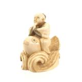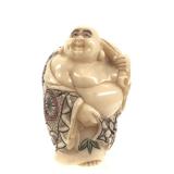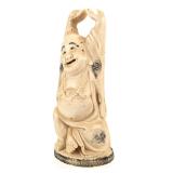 - 2596 JAPANESE IVORY CARVED HOTEI LAUGHING BUDDHA OKIMONO